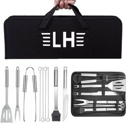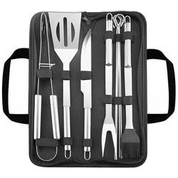 This set includes a chef's spatula, barbecue tongs, a silicone brush, eight corn tongs, and a barbecue knife. This complete barbecue accessory set is the ideal gift for any barbecue enthusiast or chef. It's perfect as a gift for Father's Day, birthdays, Christmas, weddings, housewarming parties, and more. All barbecue tools are stored in a lightweight, portable, and durable zippered storage box. You can easily take them out for use and easily organize them after the barbecue.