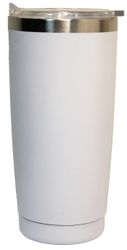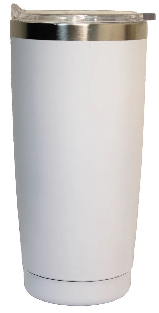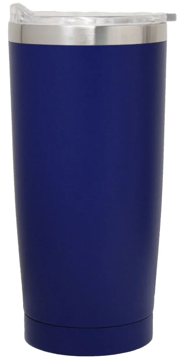 Attractive 22 Oz. thermal travel mug with transparent see thru slider lid. Food grade heavy stainless steel inside and out. Double wall vacuum insulation is ideal for temperature retention. It keeps drinks hot or cold for up to 12 hours. Fits into a car cup holder. Stainless steel silver, matte blue, matte white or matte black color. One color silk screen printing is included and full colors or laser engraving is also available for an additional fee. Please inquire.