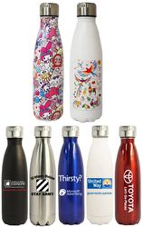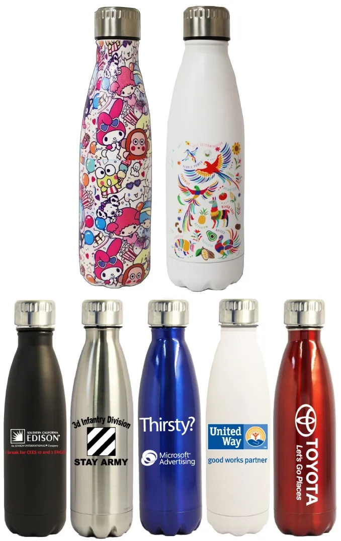 People will love this 16 Oz. stainless steel thermal bottle especially when it comes with a brand name they adore. The vacuum insulation makes the drink stay cold or hot for more than 12 hours. Tight screw on cap makes sure it won't leak. Large horizontal or vertical imprint size for your logo. Unbeatable price for a double wall S. steel insulated bottle. One color screen printing is included. Full color digital print & laser are available for additional fees. Please inquire. Hand wash only.